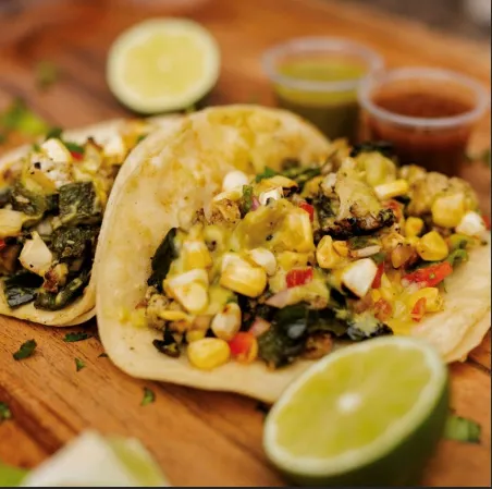 Roasted Cauliflower And Poblano, Topped With Shredded Cheese, Queso Blanco, Shredded Lettuce, Pico, Corn Relish, Creamy Green Sauce, And Lime Crema.