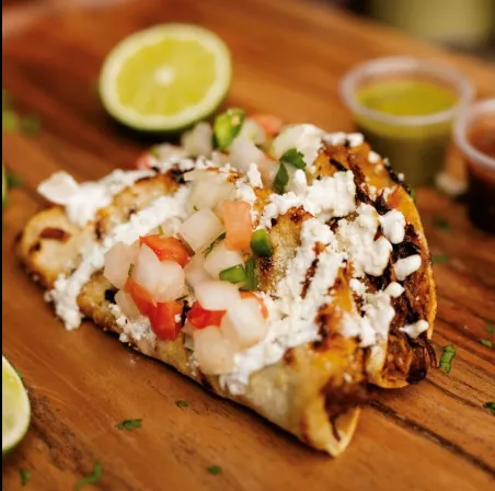 Smoked Beef Braised In A Pepper Marinade, Topped With Shredded Cheese, Queso Blanco, Shredded Lettuce, Pico, Honey Chipotle Crema.