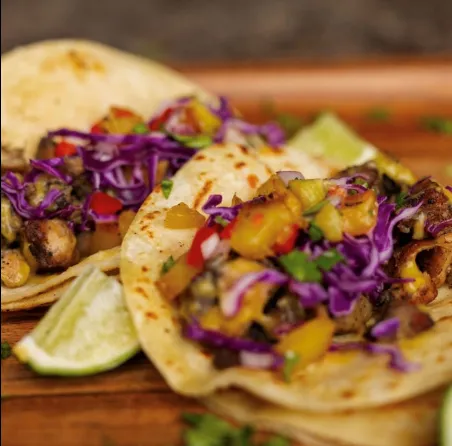 Marinated Jerk Grilled Chicken, Topped With Shredded Cheese, Queso Blanco, Shredded Lettuce, Pico, Mango Habanero Sauce, And Lime Crema.